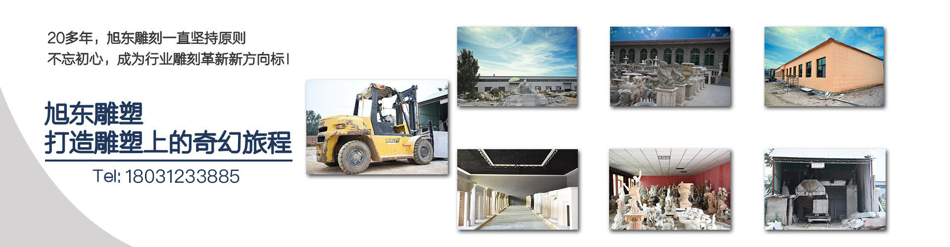曲陽縣旭東雕刻有限公司制作出的作品時常流于國內(nèi)各個省區(qū)甚至國外,贏得廣大客戶信賴,公司地址位于河北省保定市曲陽縣羊平鎮(zhèn)經(jīng)濟開發(fā)區(qū), 歡迎各界熱愛雕刻的人員前來欣賞和購買。 公司主要從事石木雕刻、石板、壁爐、工藝品、不銹鋼、銅、鐵雕刻品的生產(chǎn)和銷售。 現(xiàn)已形成紀念碑雕刻、建筑雕刻、園林雕刻、西方人物雕刻、壁爐雕刻、動物雕刻、傳統(tǒng)雕刻、裝飾雕刻、不銹鋼及金屬雕刻、 石材制品及石板等十大系列,二十六個門類上萬個品種。